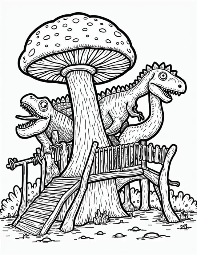 Immerse yourself in the whimsical forest floor with this charming coloring page. The intricate details of the mushroom caps, stems, and surrounding foliage provide an excellent opportunity for creativity and relaxation. As you color, imagine the soft moss beneath the mushrooms' feet and the gentle forest breeze rustling through the leaves above.